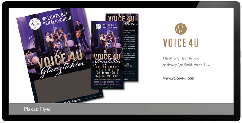 „Vielen Dank für die Gestaltung unseres Album Covers- das Ergebnis ist großartig. Kreative Lösungen, immer ein offenes Ohr für Kundenwünsche und zuverlässige, schnelle Arbeit. Absolute Weiterempfehlung dieses Grafikbüros.“Das Team, Voice 4U